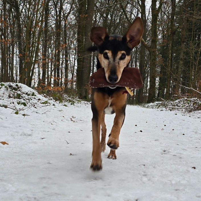 Mein Sorgenkind mit Herz. Sie kam als kranker Klinikwelpe, der nicht mehr abgeholt wurde, zu uns und lehrt mich täglich alles über Sensibelchen, Sodbrennen und die Kraft der richtigen Ernährung. Ihre Leidenschaft sind die Stöberarbeit und der Futterdummy.
