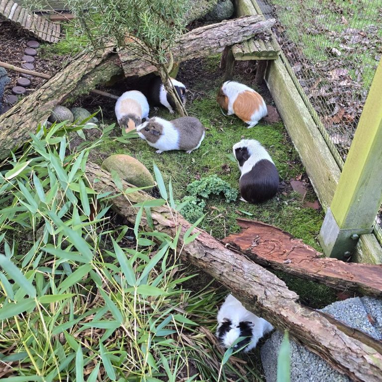 Aus unterschiedlichen Haltungen übernommen dürfen sie bei uns einfach ein artgerechtes Schweineleben genießen und erfreuen uns immer wieder durch die typische lustige Art der Meerschweinchen.